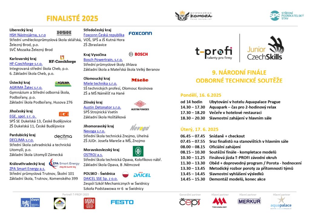 16. - 17 .6. 202516.6., 18.30 - 20.30 slavnostní zahájení 17. 6., 8 - 15.30 soutěžní den - slavnostní ocenění - demontáž